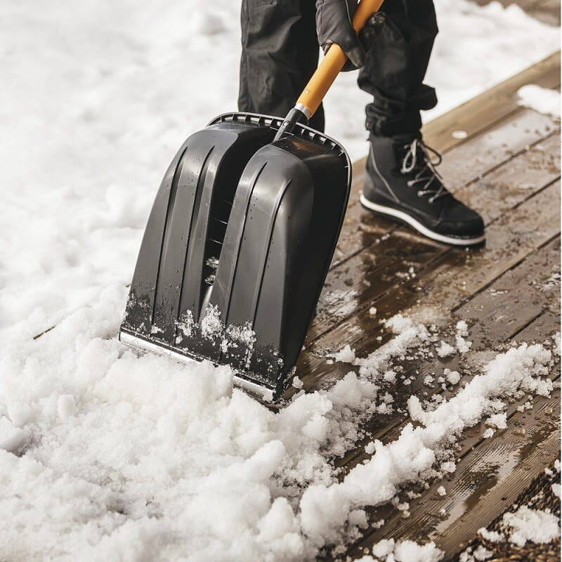 Szufla Fiskars posiada lekki, aluminiowy trzonek pokryty powłoką PCV, która gwarantuje komfort pracy. Wielkość szufli umożliwia łatwe i szybkie odgarnięcie śniegu np. z werandy czy wokół samochodu.
