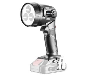 Latarka współpracująca z akumulatorami 18V GRAPHITE Energy+. Wyposażona w 3 wysokiej jakości diody LED emitujące światło o temperaturze 7000 K. Diody charakteryzują się szerokim kątem świecenia 120 stopni oraz dużym strumieniem świetlnym 260 lm. W konstrukcji latarki zastosowano 5-pozycyjny przegub, dający możliwość dostosowania kąta świecenia do wykonywanej pracy. Ergonomiczny uchwyt pokryty antypoślizgowym tworzywem sprawia, że elektronarzędzie pewnie leży w dłoni. Latarka została także wyposażona w metalowy zaczep do paska.