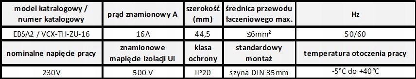 - Prąd znamionowy In: 16 A