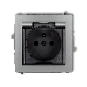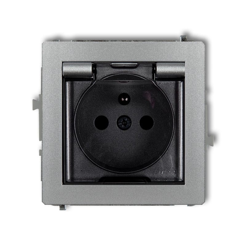 KARLIK Mechanizm gniazda bryzgoszczelnego 2P+Z (klapka dymna) srebrny metalik