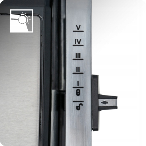 Pokrywę grilla możesz unieść i zablokować na jednym z pięciu poziomów, dzięki czemu łatwo dopasujesz ją do wysokości potrawy. Niezależnie, czy przygotowujesz cienkiego tosta, czy soczysty, gruby stek - wszystko zmieści się bez problemu i zostanie równomiernie przypieczone.