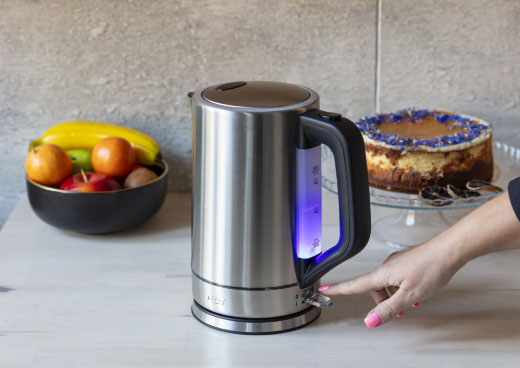 - funkcje dodatkowe: nienagrzewający się uchwyt, podświetlany wskaźnik poziomu wody, podświetlony przycisk włączenia i wyłączenia