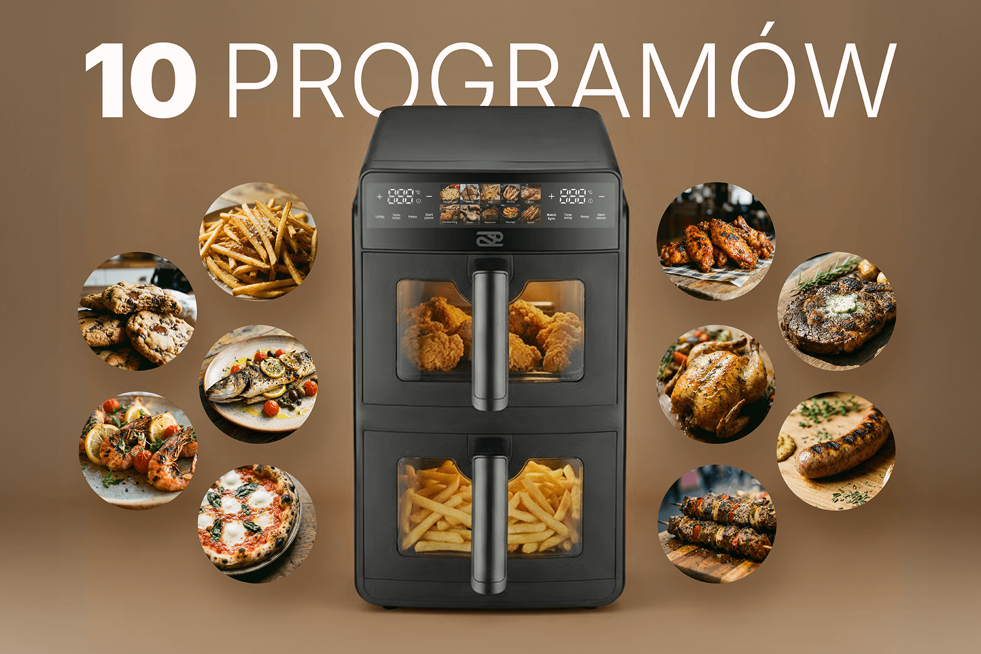 Urządzenie oferuje aż 10 automatycznych Programów, które ułatwią codzienne gotowanie - wystarczy wybrać odpowiednią ikonę na intuicyjnym panelu dotykowym, a frytownica sama dobierze czas i temperaturę.