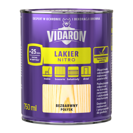 Gotowy do użycia lakier o krótkim czasie wysychania. Receptura produktu bazuje na nitrocelulozie wzbogaconej poliestrowymi spoiwami, dzięki czemu lakier jest wyjątkowo trwały przy zachowaniu optymalnej elastyczności. Podkreśla i zachowuje naturalny kolor drewna wydobywając jego urok.