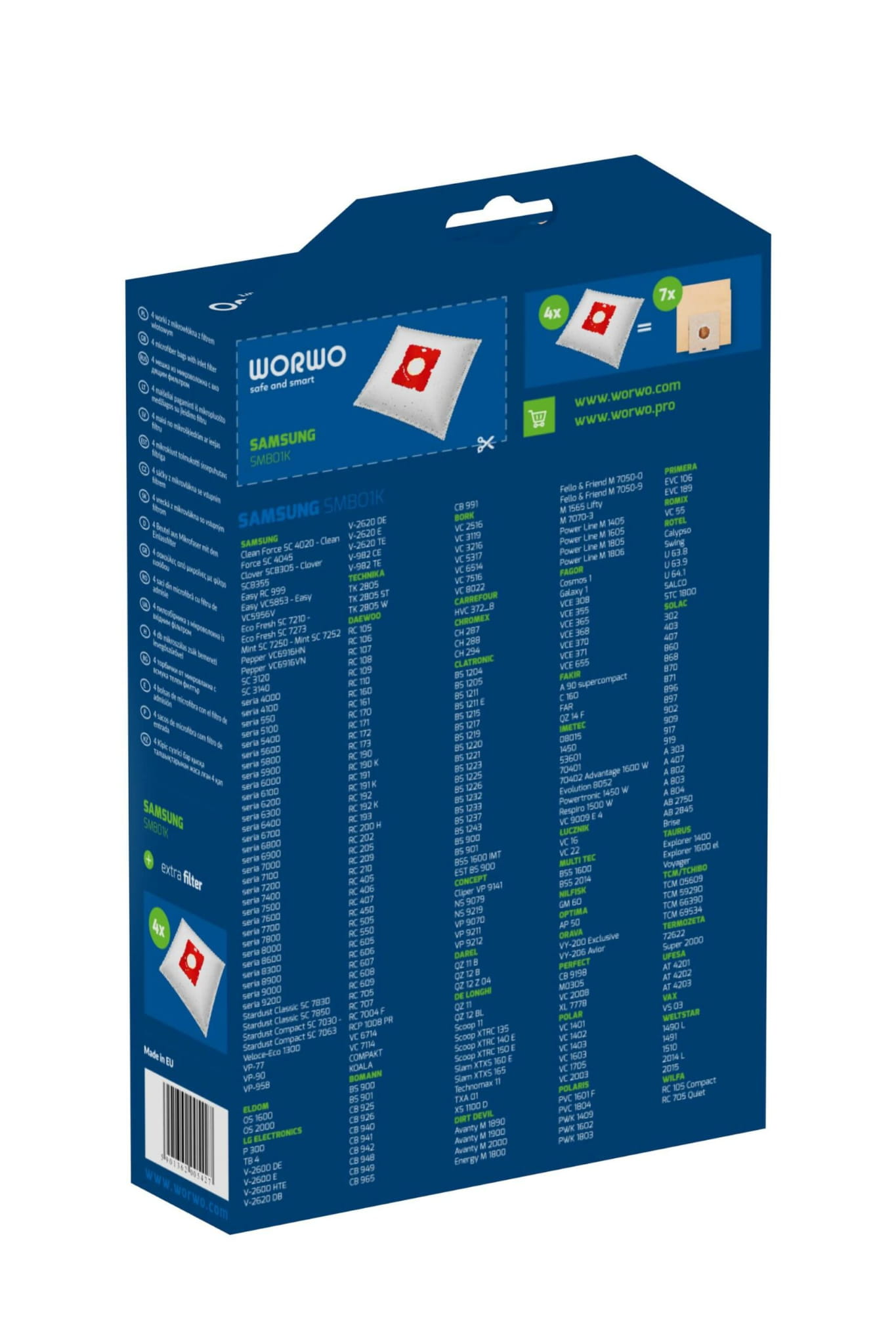 Wykonane z mikrowłókniny worki do odkurzacza, zapewniają większą skuteczność filtracji w porównaniu z workami papierowymi (poziom zbliżony do filtrów HEPA), a także redukcję emisji kurzu praktycznie do zera. Są także w stosunku do nich dużo trwalsze (odporniejsze na uszkodzenia), i działają o 60% dłużej.